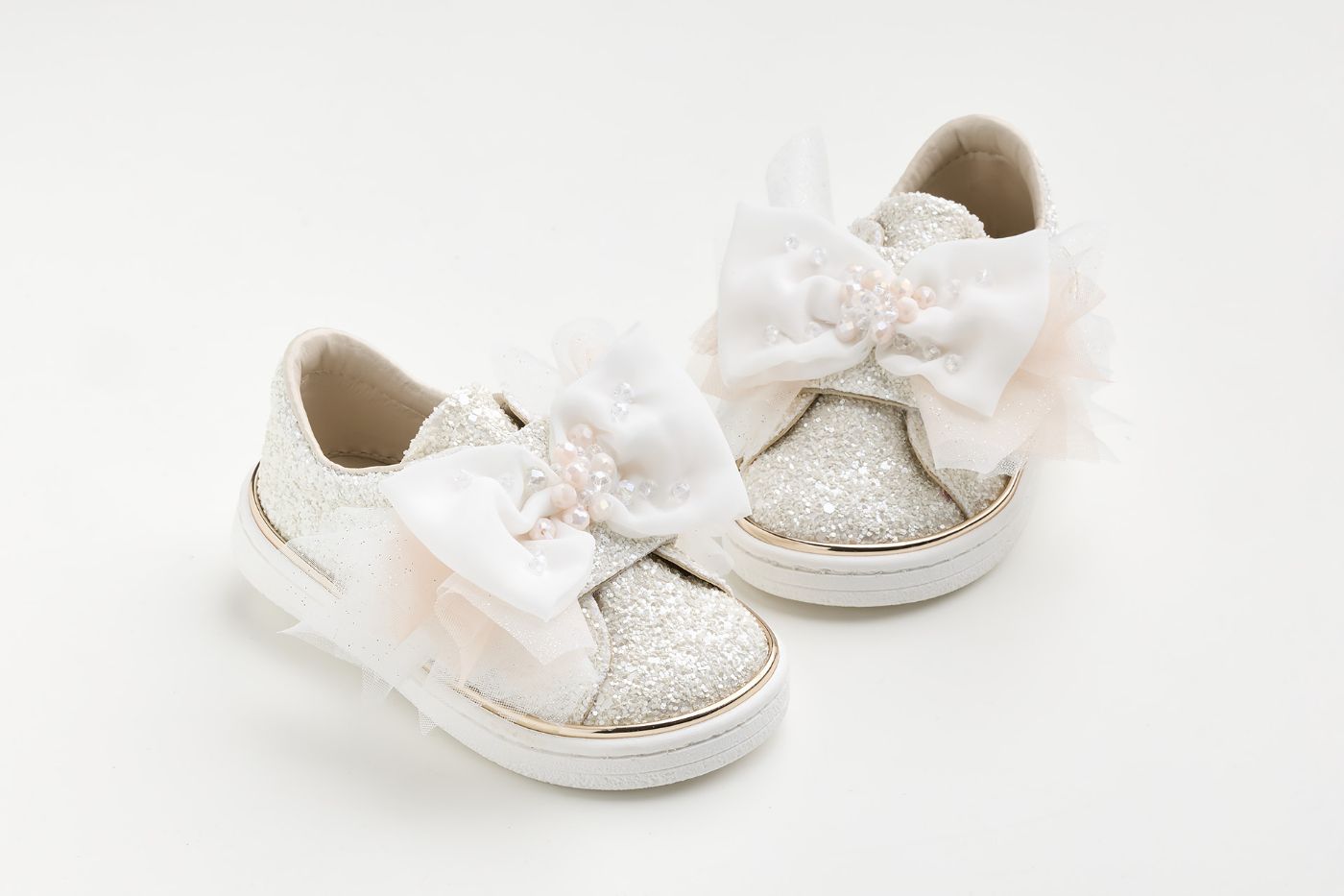 Sneaker περπατήματος σε off white ματ γκλιτερ με χειροποίητο off white φιόγκο από μουσελίνα