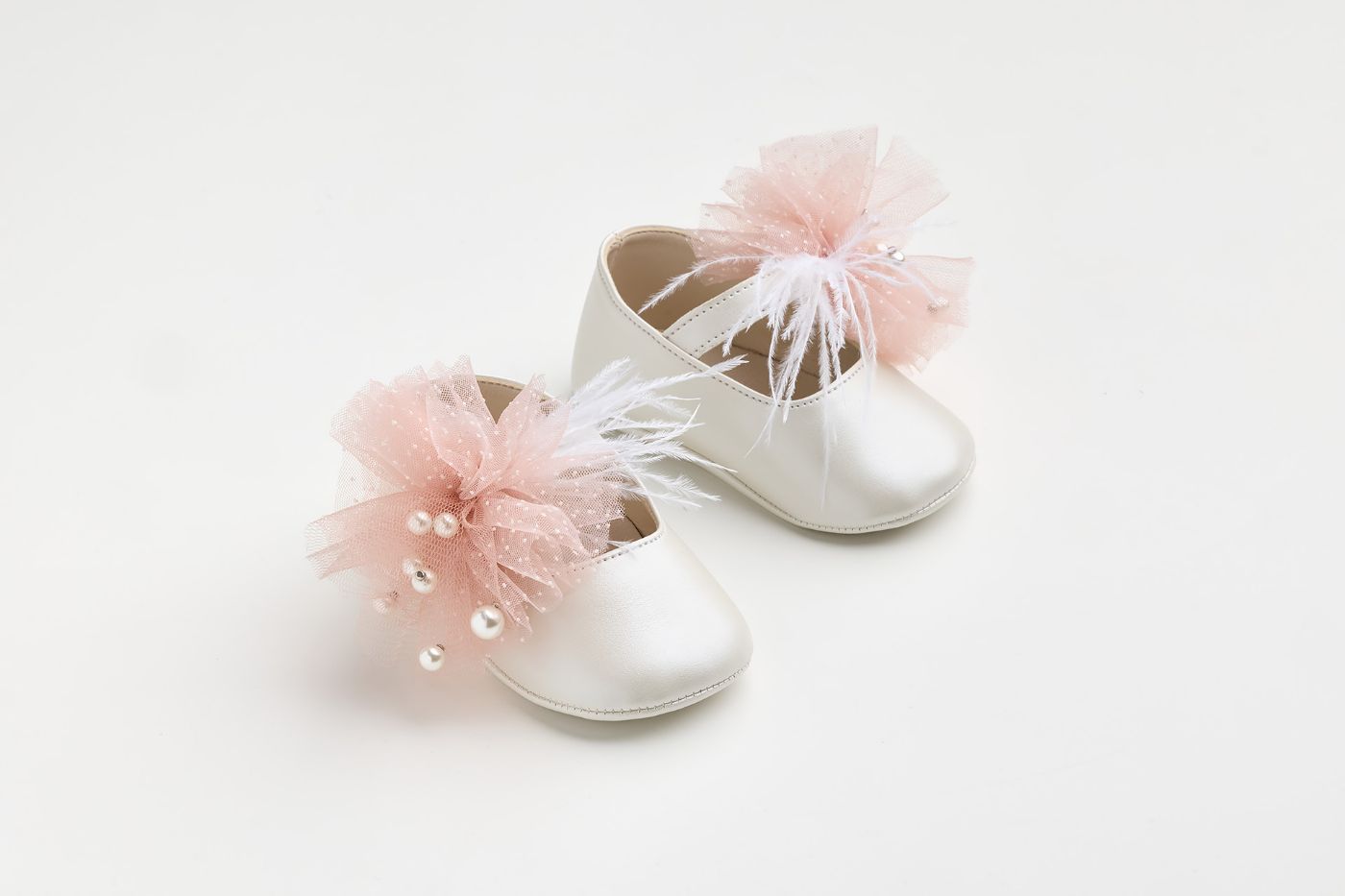 Μπαλαρίνα αγκαλιάς σε εκρού τεχνόδερμα με χειροποίητο διακοσμητικό από σάπιο μήλο πουά τούλι πέρλες και φτερά