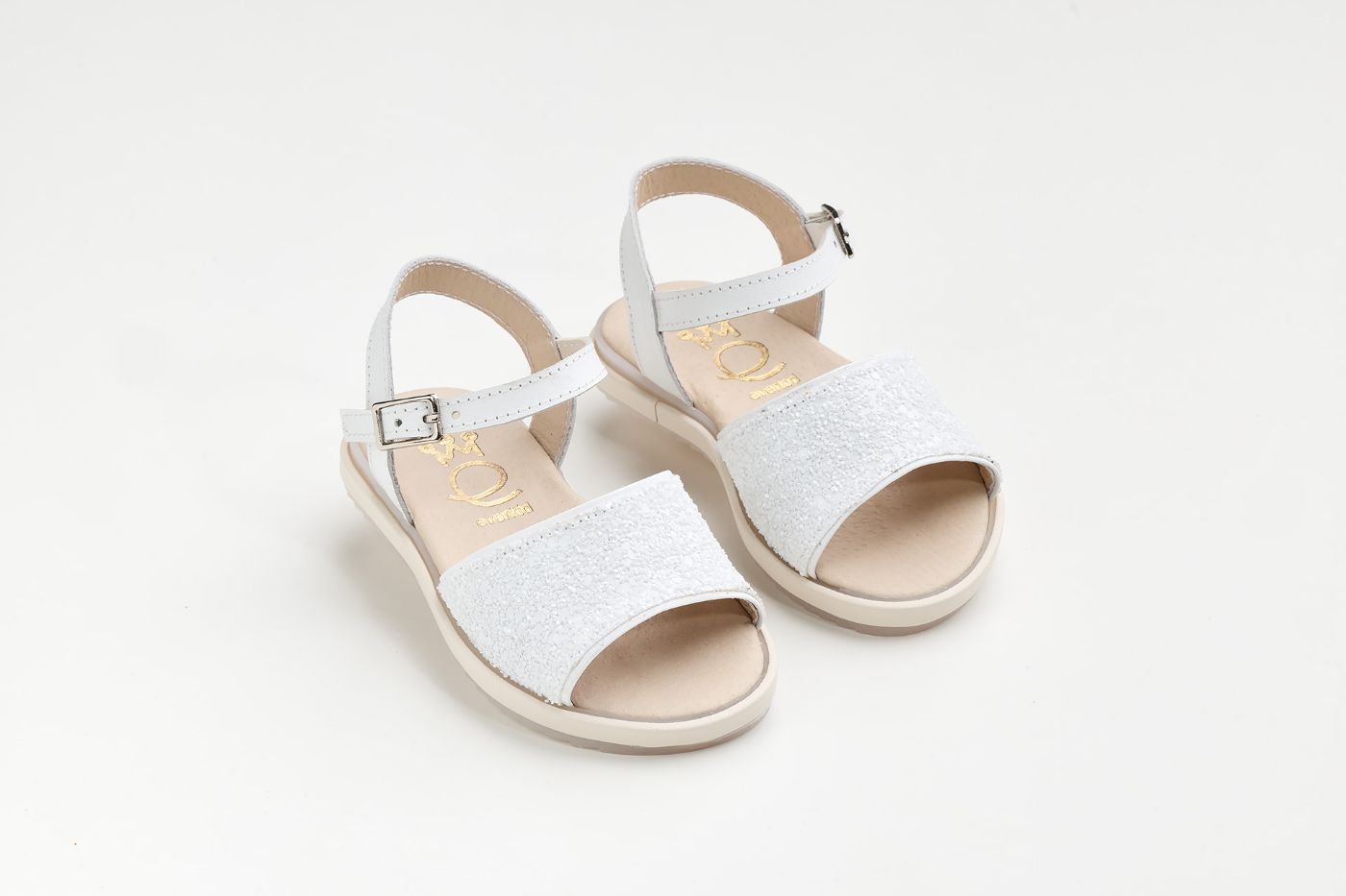 Σανδάλι περπατήματος σε λευκό δέρμα και λευκό ματ γκλιτερ