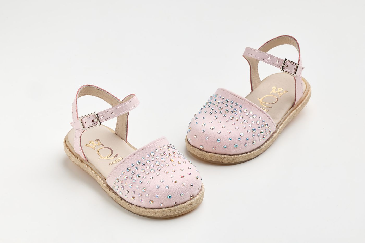 Εσπαντρίγια περπατήματος σε dusty pink δέρμα και ροζ συνθετικό καστορ με στρας