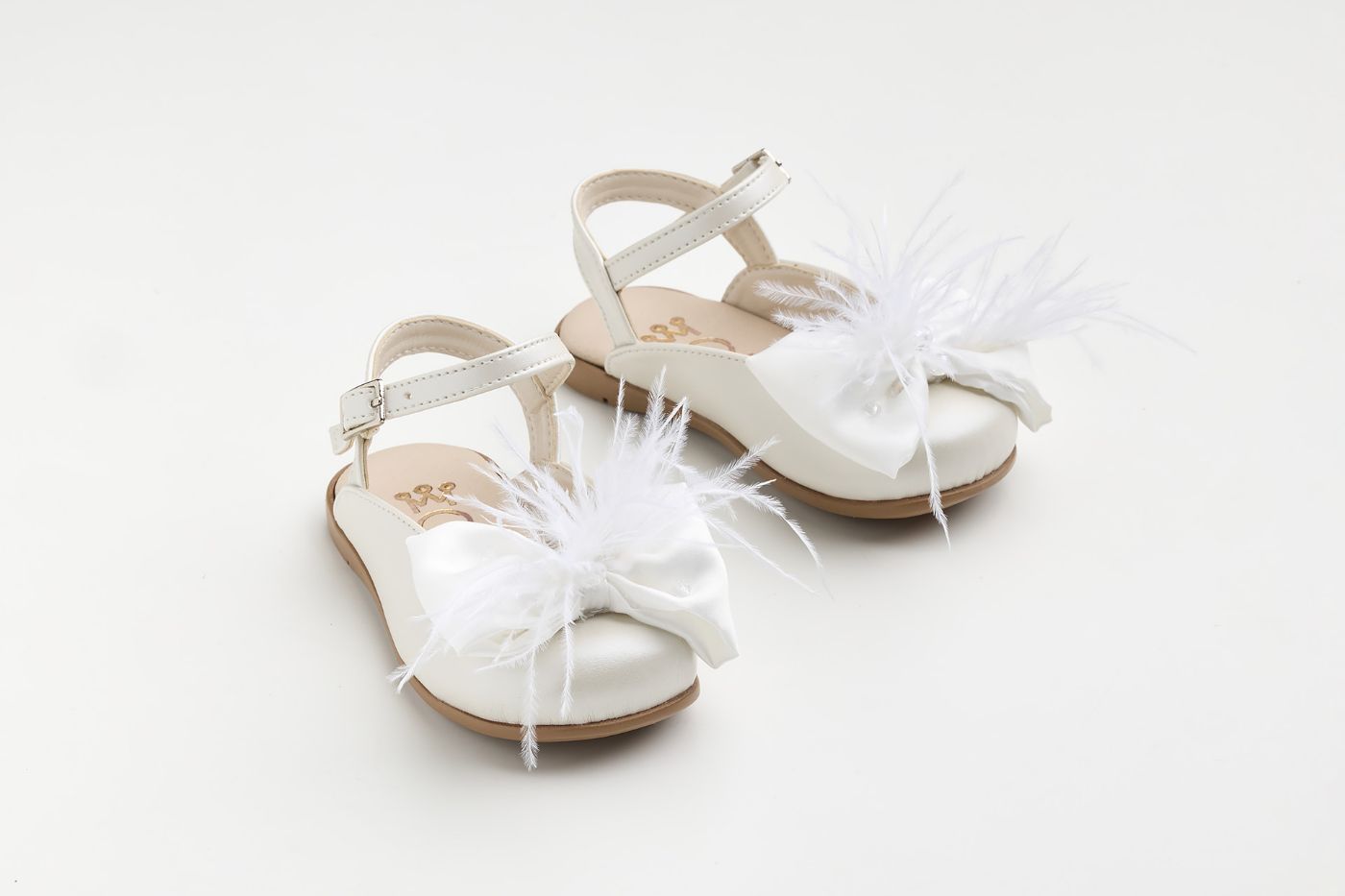 Μπαλαρίνα περπατήματος mule εκρού δέρμα με χειροποίητο φιόγκο από μουσελίνα και φτερά