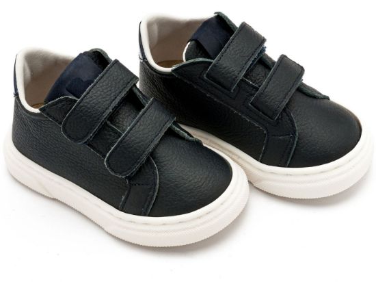 Μονόχρωμο Δερμάτινο Σνίκερ με Διπλή Μπαρέτα Χρατς σε Μπλε Χρώμα
