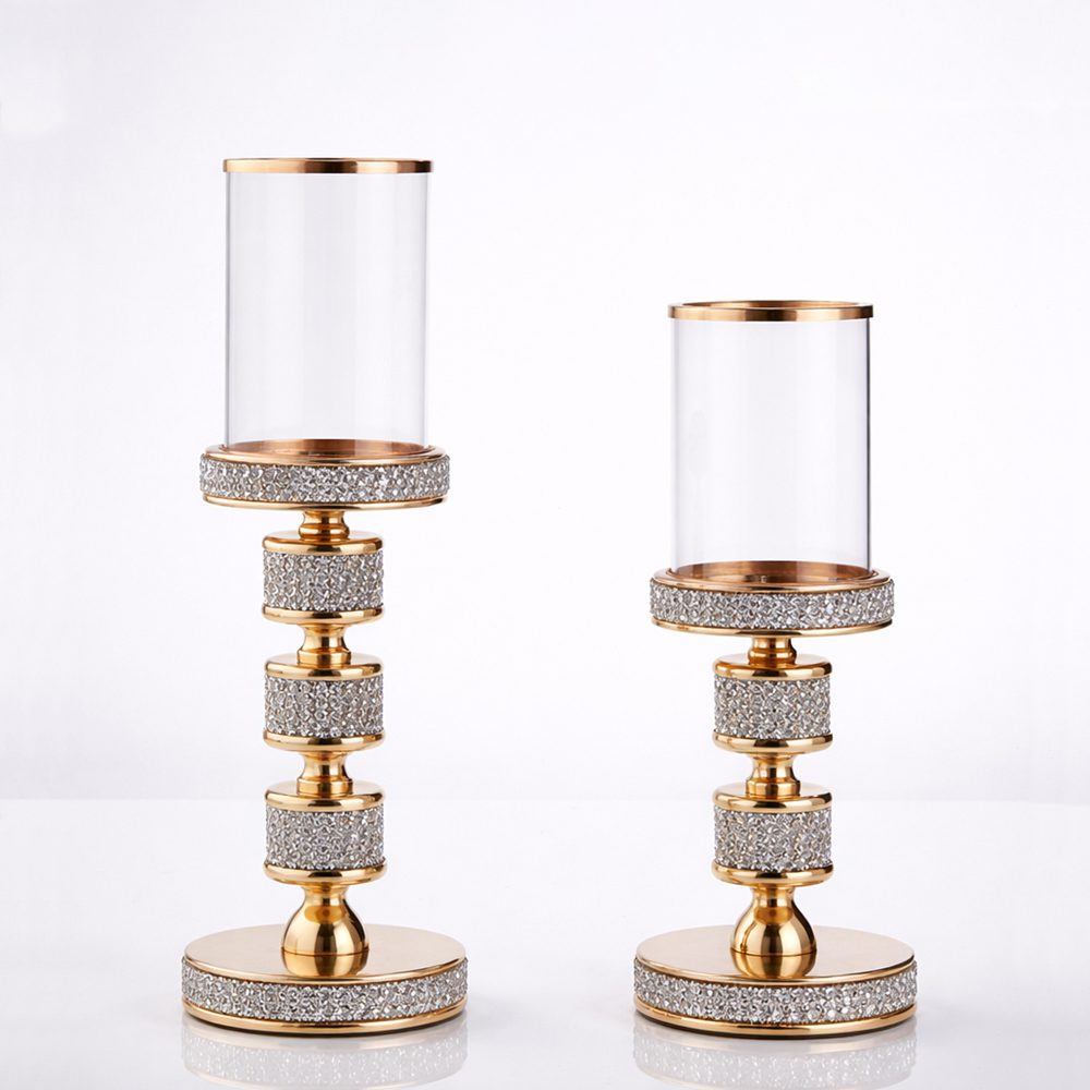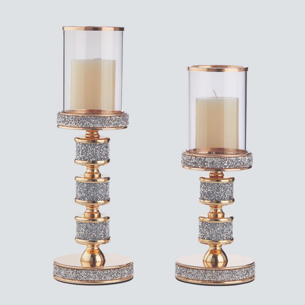 Σετ λαμπάδων γάμου με κρυστάλλινα κηροπήγια, χρυσή λεπτομέρεια και γυάλινο επάνω μέρος. Είναι πραγματικά μια εξαιρετική επιλογή για την ημέρα του γάμου σας.