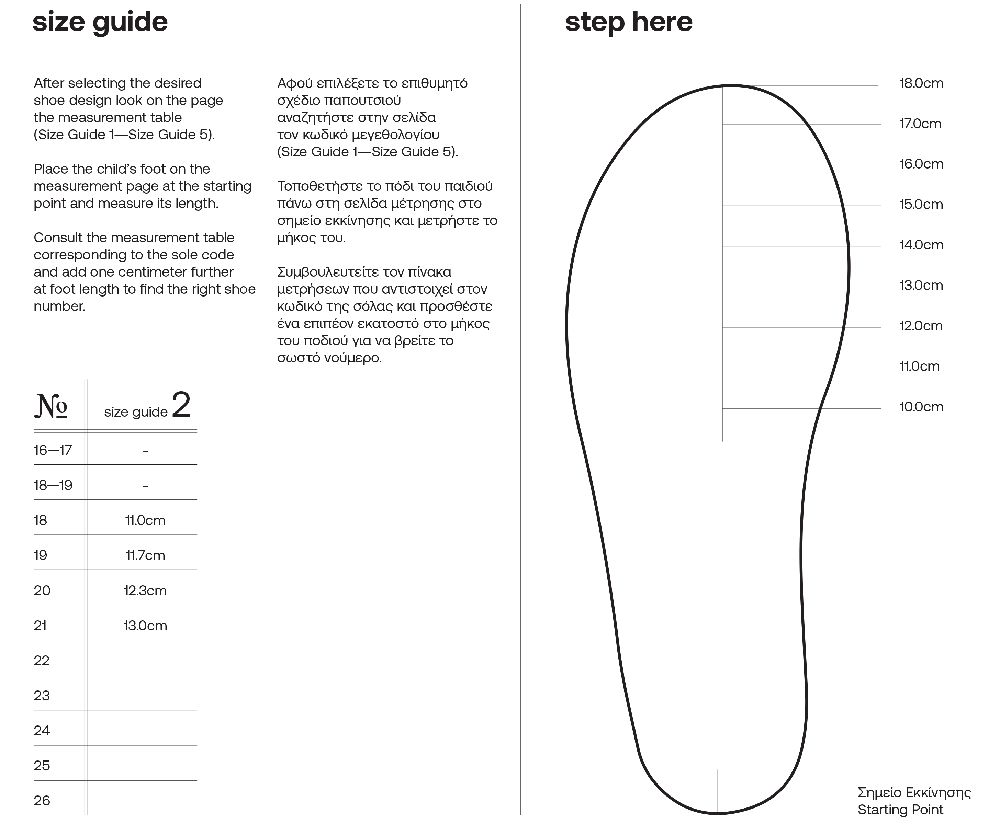 Ο οδηγός μεγεθών της εταιρίας Baby Walker θα σας βοηθήσει να επιλέξετε το σωστό νούμερο κατά την επιλογή του παπουτσιού